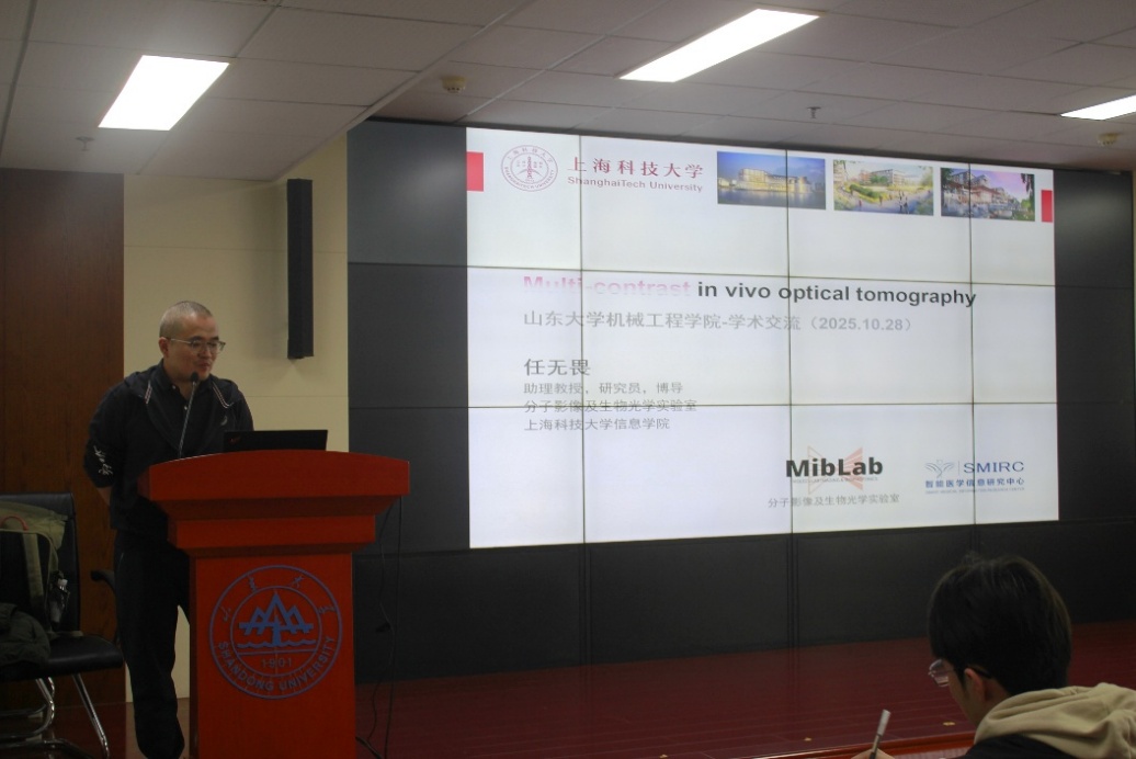 2025年10月28日上午10点,机械工程学院在千佛山校区创新大厦1103室举办“多对比度光学断层扫描”学术讲座。讲座由上海科技大学信息学院助理教授任无畏主讲,学院部分老师和硕博研究生参加了此次讲座。