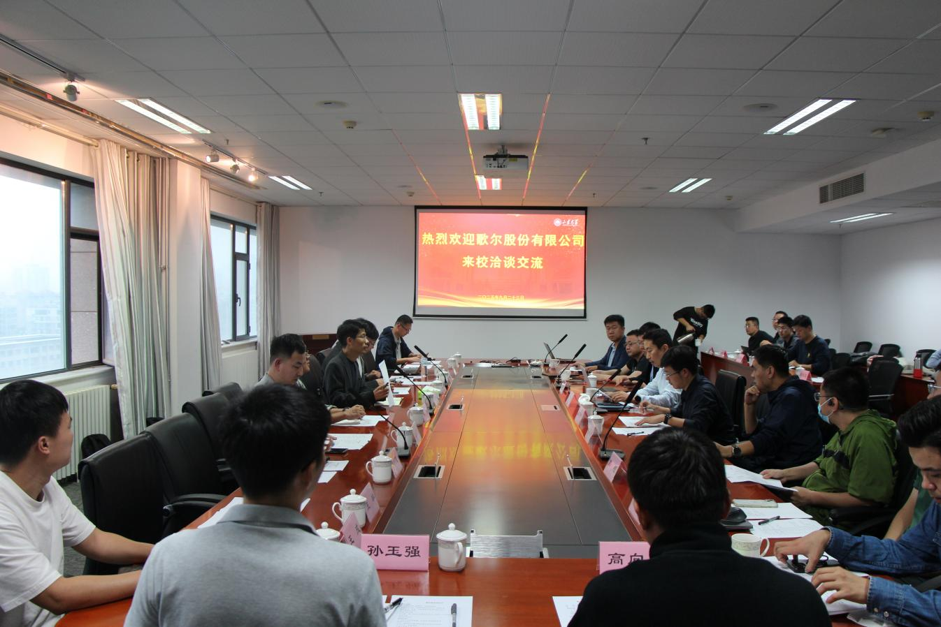 9月23日,歌尔股份有限公司副总裁张金国一行来机械工程学院洽谈交流。院长万熠出席并主持会议。