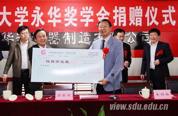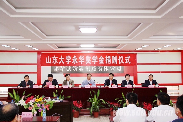 110周年校庆庆典前夕,淄博永华滤清器制造有限公司捐款50万元在山东大学设立研究生奖学金。9月27日,山东大学永华奖学金捐赠仪式举行。山东大学党委副书记方宏建,沂源县委常委、常务副县长李明涛,淄博永华滤清器制造有限公司董事长李永华出席仪式并讲话。
